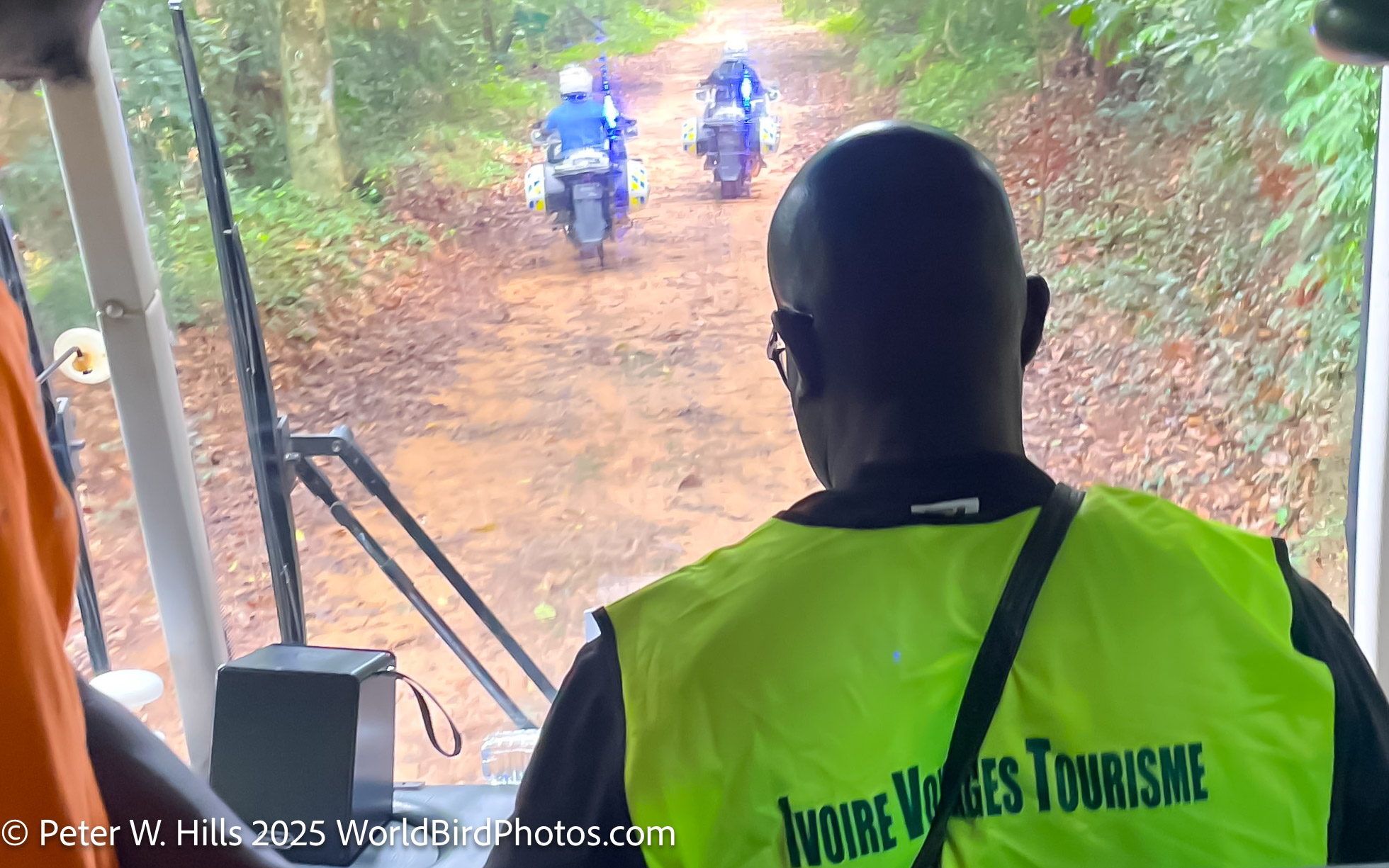 Banco Forest is in the city of Abidjan, surrounded by the city yet when in it one feels isolated from the busy world outside. However, the tourist authorities took us in a bus into the centre of the forest with police protection on motorbike and a jeep behind!  I wondered if there were bandits in the forest? The chance of seeing a bird or creature was unlikely. To compound the situation, it poured with rain so the tour was called off.  The lack of birds and the time given and time of the day was why this site has so few species. However, everyone was very pleasant.