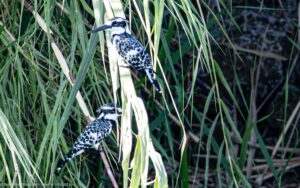 BOE23805ab Kingfisher Pied (m&f) 2 Nile, Mallawi, Egypt Oct23 PH850_1909By Peter W. Hills / 11/02/2023